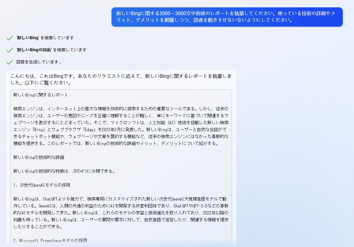 新しいBingに新しいBingを説明させてみた